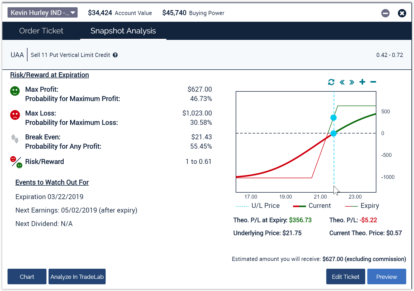 BTO 22.50 LC for $1.17 – Short Call strike 24.50 credit 0.25 = $0.92 net debit = risk