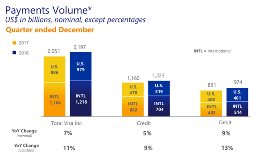 While a larger proportion of Visa’s transactions are credit-card based, the company has seen significant growth in the debit card market.